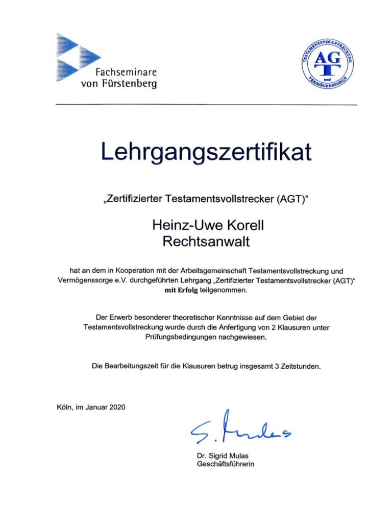 - Seit 2020 zertifizierter Testamentsvollstrecker